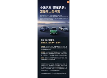 小米汽車現(xiàn)車選購(gòu)新增準(zhǔn)新車上架開(kāi)售,面向所有客戶開(kāi)放