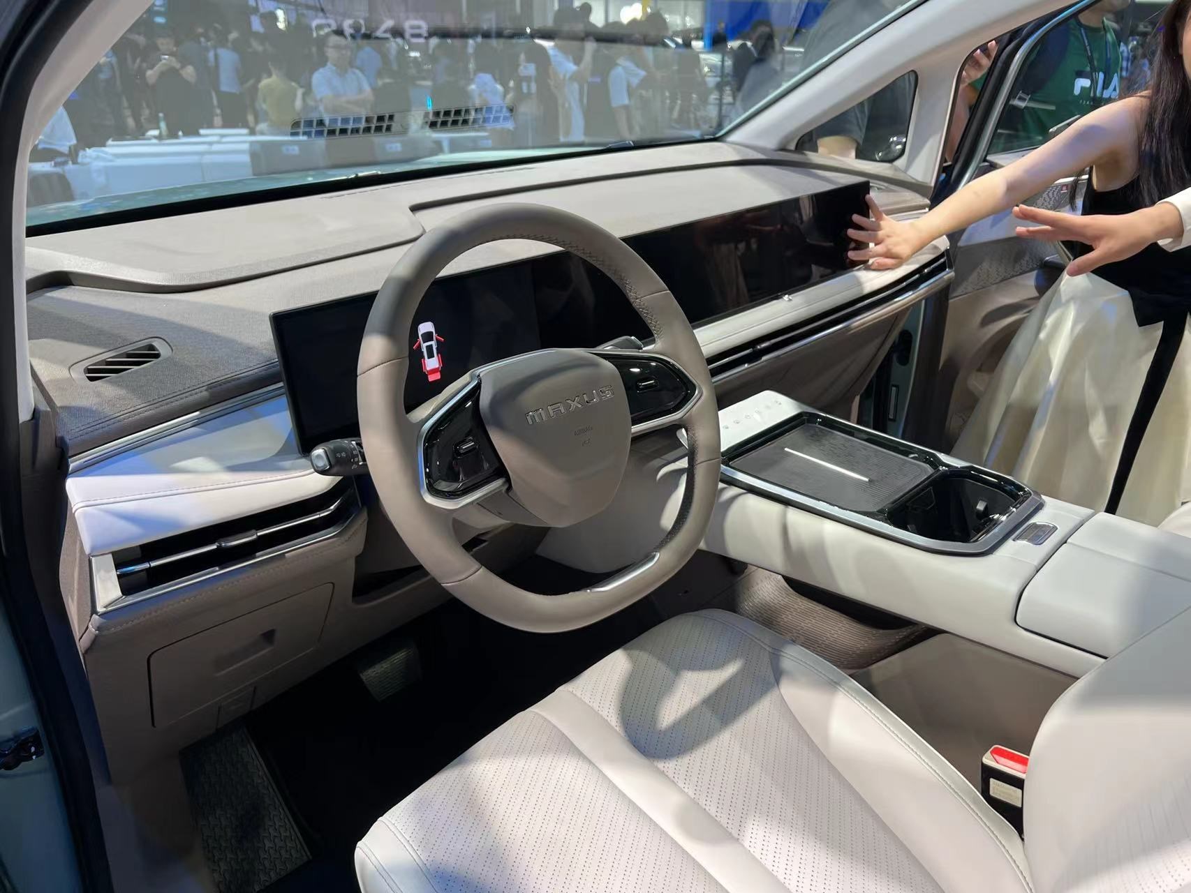進入車內(nèi),最引人矚目的便是由三塊12.3英寸屏組成的聯(lián)屏系統(tǒng),并內(nèi)置高通驍龍8155芯片斑馬智行系統(tǒng)。主副駕車門上還配備了電子后視鏡(選裝件)的車內(nèi)顯示屏,座艙的科技感濃重。整個內(nèi)飾風(fēng)格素雅簡約,中控臺和中央通道區(qū)域使用了大面積皮質(zhì)包覆,質(zhì)感豪華。