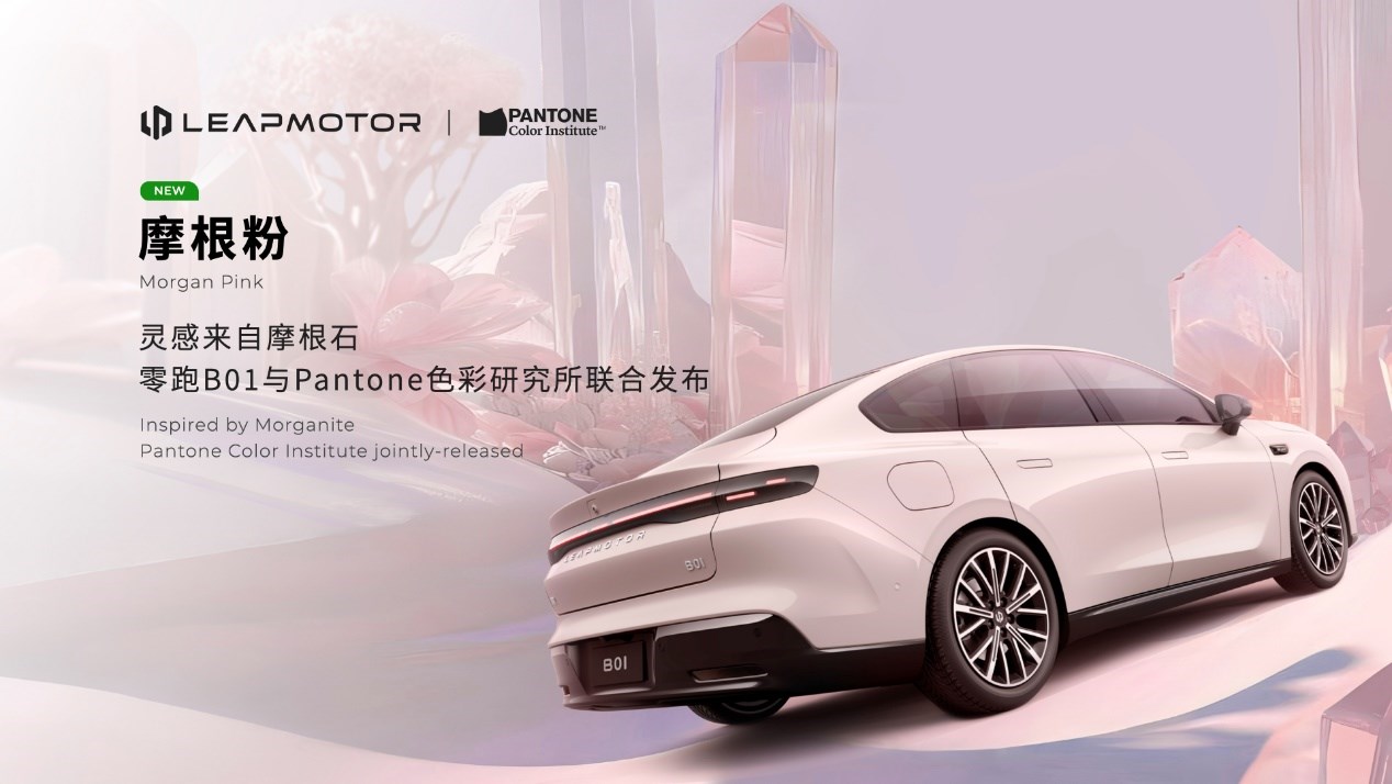 新車推出了8種車身顏色。新亮相的"摩根粉"是零跑與國際知名色彩機(jī)構(gòu)——Pantone潘通,共同發(fā)布的全新配色,摩根石因含有微量錳元素,金屬漆面在陽光下呈現(xiàn)躍動的浪漫粉色微光,承載著自信與勇氣的美好寓意。