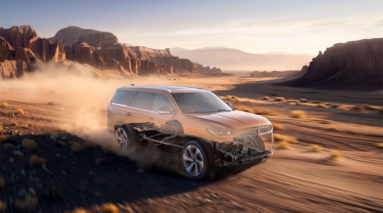全新一代林肯領航員八橫兩縱的高強度全鋁車身,上車身鋁合金占比超過97%,為車身提供更好的剛性、耐久性和抗腐蝕性,操控性和脫困性兼得,縱橫天地也無所畏懼。