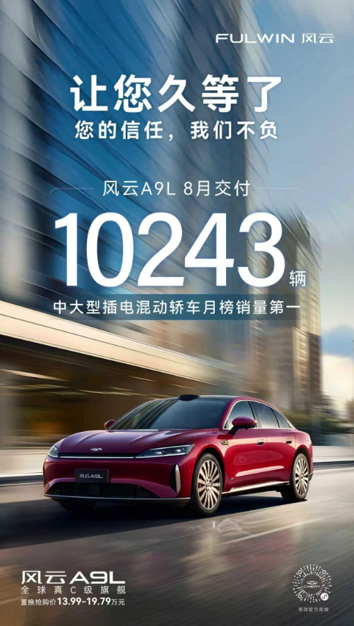 從7月上市至今,奇瑞風(fēng)云A9L持續(xù)引爆市場(chǎng)熱度。8月份,風(fēng)云A9L連續(xù)四周銷量霸榜,最終以單月交付10243輛的卓越成績(jī),成為中大型插電混動(dòng)轎車市場(chǎng)的領(lǐng)頭羊。這一成績(jī)的背后,不僅是產(chǎn)品力的勝利,更是奇瑞體系化造車與高效交付實(shí)力的集中體現(xiàn)。